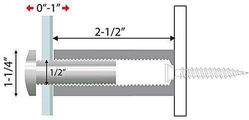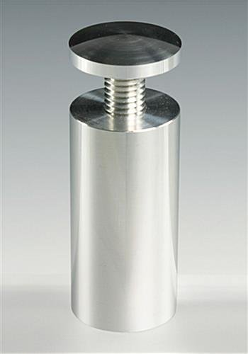 These aluminum standoffs are the largest size we carry. Best suited for flat applications such as displays for merchandise, stand-offs deliver with quick assembly and sharp looks. These aluminum standoffs boast a bright polished finish. They look exceptional. These display mounts are the perfect stand-offs one would want to use in retail displays.
