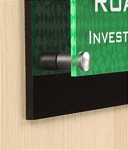 To install our sign accessories, first screw the standoffs to any wall surface with the included mounting hardware. The caps then are put through the holes in your sign display and screwed into the standoffs. Once they are hand-tightened your work is done! Standoffs, sign supports, and other sign accessories can turn a simple sign system into an expensive-looking and stylish presentation. Buy our sign accessories and see for yourself. We supply these sign mount standoffs for sale to sign installers, interior designers, or anyone else who needs to elevate the quality of their installations.