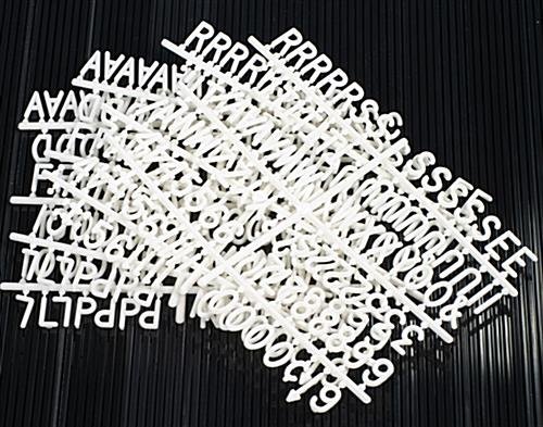 This letter set includes 1″ letters on four separate sprues. The letter set is an economy product and does not come with a storage box, however you get almost double the number of letters, numbers, and symbols when compared to the deluxe models. Simply pull off the letters from the sprues and start adding your custom text to your letter boards!