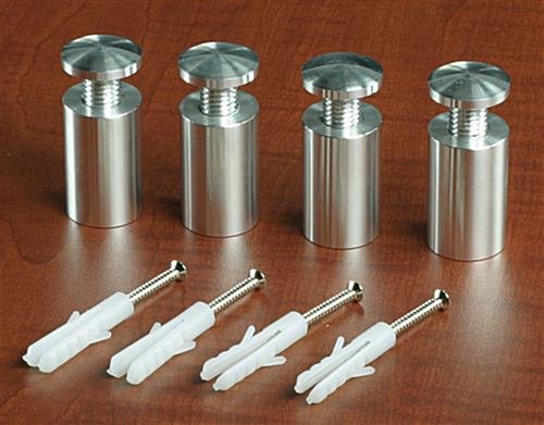 The sign mounts fit into 1/2″ holes drilled through your panels. All the mounting screws and wall anchors are included with your purchase, as well as mounting instructions to help you along the way. The standoff caps are then hand-tighted to secure the whole assembly to the wall. Our sign mounts can support panels up to 3/4″ thick. Display vibrant graphics in an orderly fashion with these attractive standoffs!