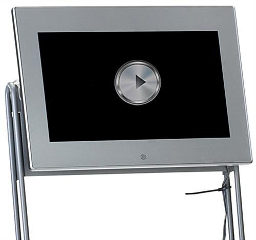 Use this 10.1” digital screen for DGNCYBRSLV to take your existing magazine stand and easily upgrade your trade show booth, lobby, or event space with engaging media. Each LCD multimedia panel includes an acrylic bracket that fits snug over the rack without the need to retrofit and locks in place using security screws to help prevent theft in public settings. The black digital screen for DGNCYBRSLV has 1024×600 resolution to brilliantly broadcast high-definition video and image slideshows, as well as built-in speakers to play background music. Ideal for use at a trade show or retail event, the LCD advertising panel features easy plug-and-play capabilities and a remote to quickly access content and engage customers. The display can read files from an SD card or the included USB drive or play directly from another source via HDMI or 3.5mm AV-in cable. To help ensure cable management, 4 zip ties are included with each unit to tie-back the cord and help prevent tripping. At the end of the expo, use the Allen key to unlock the bracket and easily dissassemble the digital screen for travel.