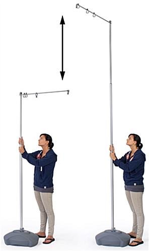 These outdoor flag pole stands are an ideal way to promote a company at an event or tradeshow! The displays will attract potential customers, clients and patrons. Outdoor flag pole stands with telescoping poles, also known as trade show displays, provide a flying design that will captivate attention from customers. If your company has an event and needs to have an advertising medium, this stand allows customers to get printed pennants and attach them with ease. These outdoor flag pole stands with water base allow for displaying this giant flying design outside for optimal promotion. These pennant displays are also a great choice for displaying artwork about a company, product or service information and can be seen at major locations such as museums, events, trade shows, stores and many others.