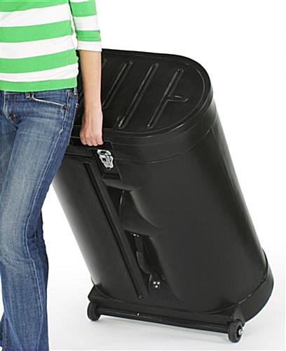 Included with this tradeshow booth is a molded, hard plastic carrying case that features built-in wheels and safety locks. This high quality travel case converts into a display counter that can be used to address crowds, display literature, or demonstrate products. To turn your case into a counter, simply wrap around the included fabric panel and attach the laminate countertop. The fabric panel is made out of royal blue hook and loop receptive materials to match the display and give your tradeshow booth a unified look. In addition to this conversion kit, we sell this tradeshow booth with two halogen spotlights. A foam-padded storage compartment in the case keeps them safe from damage during transportation and storage.