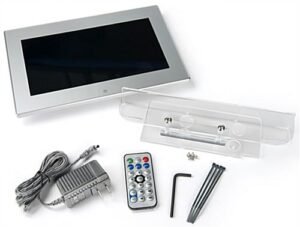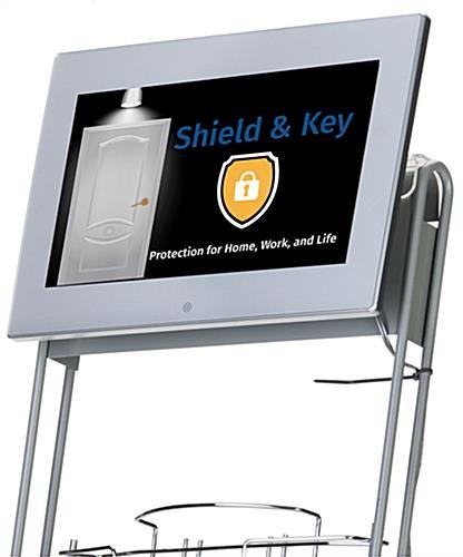 Ideal for enhancing a trade show booth, reception area, an open house, or other public space, this digital signage video literature rack combines a traditional magazine stand with an impactful LCD advertising panel. Featuring USB and mini HDMI ports for plug-and-play capability, the 10.1” screen can help improve distribution through photos, music, and recordings. With 10 magazine pockets on a floor-standing steel frame, the silver video literature rack is durable yet attractive, making this perfect for high traffic spots such as a hotel or trade show. The LCD screen has 1040×600 resolution and a built-in speaker for vivid slideshows and recordings. To help prevent theft and overall safety, the acrylic bracket for the advertising panel locks in place using security screws and zip ties are included to tie the cable to the frame to prevent tripping. Use the remote to navigate the various features available with this video literature rack, including plug-and-play with automatic start, adjustable screen settings, and several built-in apps. When ready to travel, the floor-standing frame breaks down for portability and storage until the next open house, expo, or retail event.