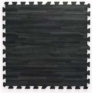 10’ x 10’ Interlocking Foam Mats, Set of 26 Flooring Tiles – Black & Gray Wood Grain