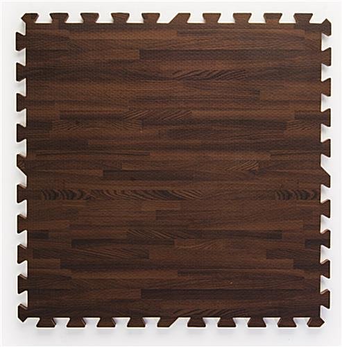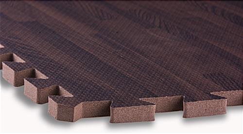 This set of cherry wood grain floor mats will add style, sophistication, and comfort to your tradeshow or retail space flooring. Sold in a set of 26, these 2’ x 2’ interlocking foam tiles fit together like a jigsaw puzzle to form a seamless 10’ x 10’ ground covering. Made out of a soft EVA material, your feet will notice the comfort of the cushioned flooring. These anti- fatigue floor mats are resilient, light, portable, and water resistant. With interlocking foam tiles, installation isn’t just fast and easy – it’s fun, too! Each set comes with detachable straight edges so that you can create your own sized flooring unit. Create an eye-catching yet soft & comfortable trade show space with these cushioned floor mats.
