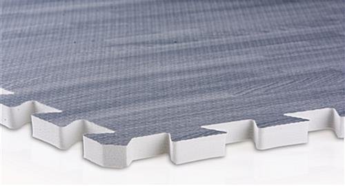 This set of gray wood grain floor mats will add style, sophistication, and comfort to your tradeshow or retail space flooring. Sold in a set of 26, these 2’ x 2’ interlocking foam tiles fit together like a jigsaw puzzle to form a seamless 10’ x 10’ ground covering. Made out of a soft EVA foam material, your feet will notice the comfort of the cushioned flooring. These anti-fatigue floor mats are resilient, light, portable, and water resistant. With interlocking foam tiles, installation isn’t just fast and easy – it’s fun, too! Each set comes with detachable straight edges so that you can create your own sized flooring unit. If you want to make your tradeshow or expo space look and feel great, these soft cushioned floor mats are perfect for you.