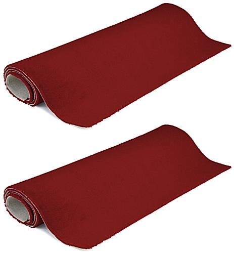 Use this 10’ x 10’ rollable red carpet to enhance the look of a trade show booth while providing comfort for both sales personnel and visitors. The 32-oz. medium-pile carpeting is made with 100% nylon, as this material is resistant to dirt and shedding is ideal for use in high-traffic public areas. Shipping as two 5′ x 10′ strips, the portable rollable red carpet offers easy assembly and can be placed in various configurations to fit standard booths or walkways. The perfect accessory for rade shows or promotional events, this VIP-look nylon fiber event flooring is durable enough to withstand heavy foot traffic and has a medium pile height to offer comfort without causing instability. If desired, additional accessories such as double-sided tape, padding, and a soft travel bag to make set-up and transport even easier are sold separately. Rather than paying exorbitant fees to rent rollable red carpet for special events, own your own portable VIP-look flooring at an affordable price!