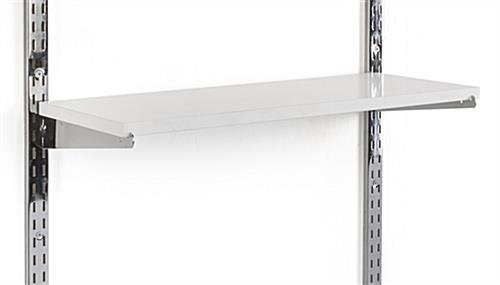Allow customers to browse and shop with ease using this white display shelving. Rest the floating ledges upon compatible 10” bracket supports (sold separately). Perfect for wall mounted, freestanding or gondola style fixtures this white display shelving provides versatility. Update your retail shop with these floating ledges. The large surface provides an effortless way to showcase a collection of merchandise. Use this display shelving to create a complete retail shop fittings wall, perfect for engaging customers.