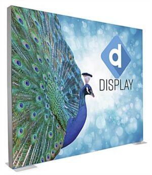 A 2-sided 8×10 silicone edge backdrop will draw visitors to your trade show booth with its rich custom graphics and sleek modern look. The fabric of a SEG wall is tucked into specialized channels in the thin aluminum frame for a secure, drum-tight fit. Branded artwork is printed in bright dye-sublimated colors on both front and back of the tension-fit polyester silicone edge graphic backdrop. The 10ft wide and 8ft tall frame is thin but strong and assembles quickly at your exhibit booth location. The wall is designed to knock down flat for easy transport in the included carrying bag. Use a 2-sided 8×10 backdrop to showcase your brand at trade shows and in retail environments.