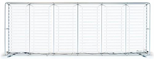 The 20′ booth with TV stand features a large format backlit wall as well as counters and accessories to make a complete trade show package. Custom printed graphics securely zipper closed around the lightweight aluminum push-button style tube frame. 6 LED ladder light sets illuminate the wall’s interior to create a bright and inviting atmosphere. The hard-sided storage cases in this portable booth with TV stand double as counters. Slip on the included full color custom printed covers to quickly create 2 simple branded workstations. Top one of the counters with the double-wide clear acrylic business card holder, which has a lid that can be secured closed for storage. An angled sign holder in clear acrylic is also included in the booth with tv stand and fits standard 8 1/2″ by 11″ size paper signs. Incorporate digital content with the sturdy truss fixture, which holds a television up to 60″. The VESA flat panel mount stands at 72″ high and breaks down to fit into a carry bag for easy transport.