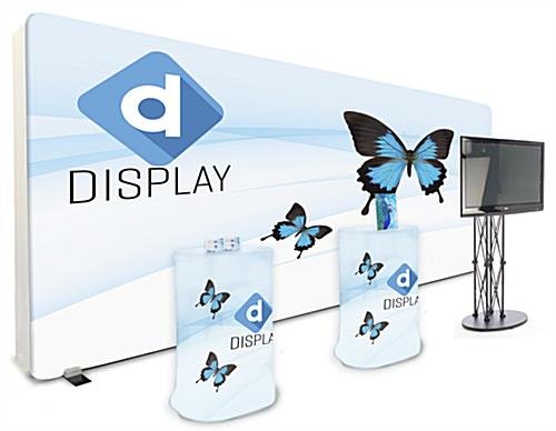 20′ Booth with TV Stand Includes Backlit Graphic Wall with Cases and Acrylic Sign Holder