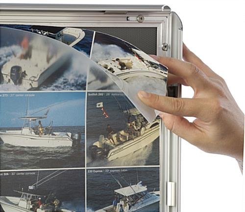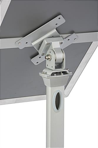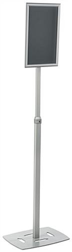 This silver 11 x 17 poster frame pedestal is the perfect way to catch the attention of passersby! Featuring height adjustability between 53”h x 72”h, the floor stand sign holder can showcase products on sale or other flashy advertisements at the ideal height for your location. The aluminum pedestal is built with sturdy construction for years of use. The simple to use sign holder snaps open on each side for easy access to the images or menus to be changed. A pedestal such as the one shown here is a great floor stand fixture for car dealerships, movie theaters, restaurants and many more types of establishments. Each display comes with a sturdy weighted base to keep the unit upright while in use.