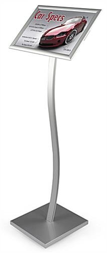 This sign holder stand that measures 46.5” tall is lightweight and easy to move as promotional needs and floor setups change. The aluminum pedestal of these displays is supported by a sturdy, square steel base with rubber bumper feet to protect floors. This sign holder stand that looks high end can also be easily disassembled, for transport to tradeshows or other offsite events. Its knock-down construction also saves money on shipping. This sign holder stand that is chest height will easily draw the attention of attendees in the show aisles. Hardware and instructions are included, and assembly can be completed by one person. This s-shaped sign holder stand will provide cost-savings and promote sales while making the space it is in look high-end and professional. From hotel lobbies to reception areas and restaurants to retail stores, these pedestal print stands with a brushed silver finish, non-glare lens and angled frame will accent and inform. Although these floor displays take less than 10 minutes to assemble, they will provide years of use.