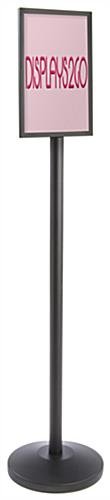 This stanchion with sign holder at the post top is the ideal marketing display for hotel lobbies, movie theaters and shopping malls as well as a multitude of other facilities! Bring attention to new products and services with this 65.5”h poster stand! The stanchion with a poster frame at the post top fits 11” x 17” vertical prints at eye level to catch the eye of potential clientele! The high quality poster stand shown here is just one of the rich and upscale fixtures in our exclusive UpLuxe series! These durable marketing stands make any product advertisement more attractive and stylish! Each black stanchion is weighted at the base to ensure sturdiness and durability in busy environments.
