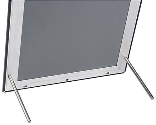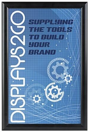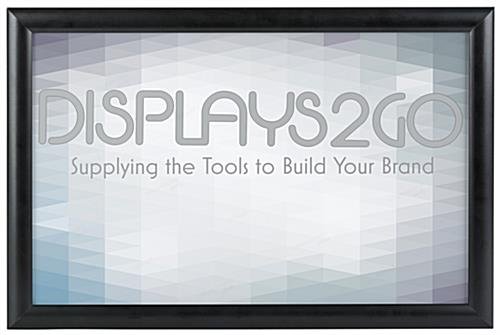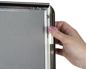 This 11 x 17 black snap together frame includes a set of two dowels that allow for tabletop display as well as hardware for wall mounting. Each poster holder has a rounded 25mm aluminum profile that is spring-loaded for quick and easy signage changes. The quick clip frame can be displayed in either portrait or landscape orientation. Many customers use the aluminum poster holder to post way finding signage or name plates outside of offices and other important areas. The spring-loaded design of the sign frame makes it ideal for use in fast-paced industries such as retail or sales. Updating information is fast and easy. To assemble your print simply open the hinged profile, remove the shatterproof PVC lens, and insert the custom signage!