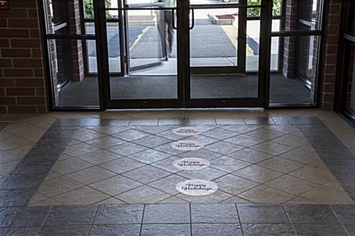 Add cheer to your business with a 12” x 12” round “happy holidays” floor decal for indoor or outdoor use. The sticker features an adhesive backing and a non-slip textured vinyl surface. For seasonal advertising adhere the UV printed snowflake floor decal to most substrates!
