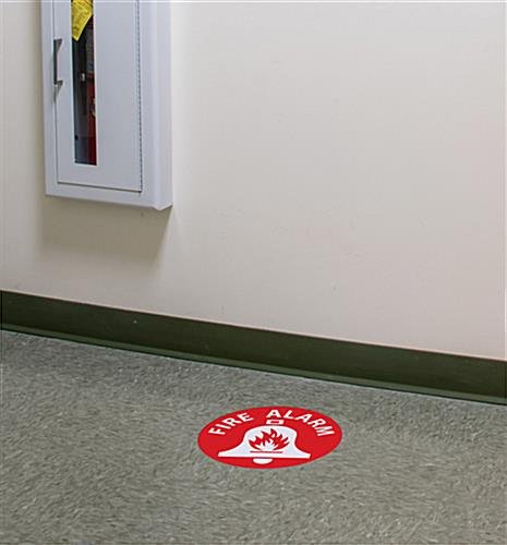 With a textured finish to prevent slipping on a walking-working surface, this fire alarm floor safety sign helps to improve communication within the workplace and offer guidance in an emergency. The vinyl sticker can be placed on concrete, carpet, wood, or any number of other flooring types and is pre-printed with a bright red graphic with an easily recognized pictogram. Able to withstand months of foot traffic on a walking-working surface, the textured finish on the 12” x 12” floor safety sign can be easily cleaned to ensure visibility in an emergency .