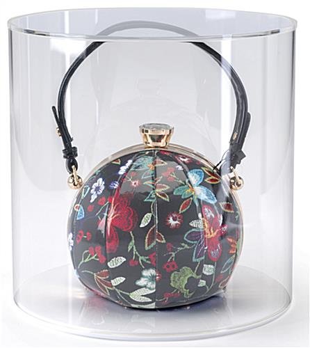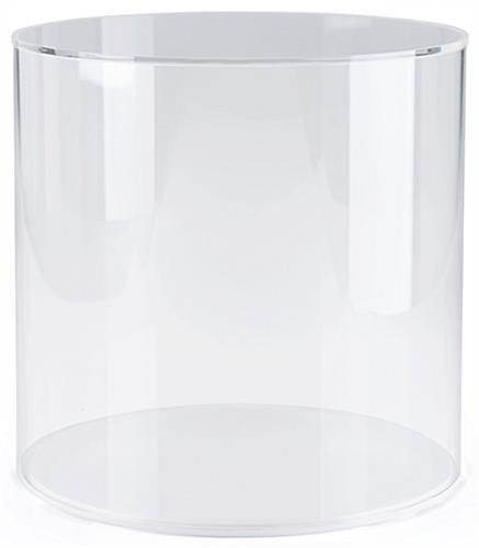 This round acrylic display case with a white base is a simple and sleek way to exhibit store merchandise, collectibles, artifacts and much more! The indentation around the circumference of the white base was designed to help keep your clear cylinder topper in place so your valuables aren’t tarnished by dust and fingerprints. This round acrylic display case can house collectibles up to 11.5” x 11.8”. The contemporary look of these clear containers will modernize the way you exhibit items. Having the ability to change out the bottom color is a unique feature about these particular plastic cylinder showcases. This clear round acrylic display case will amplify the attention being brought to your most prized possessions and products.