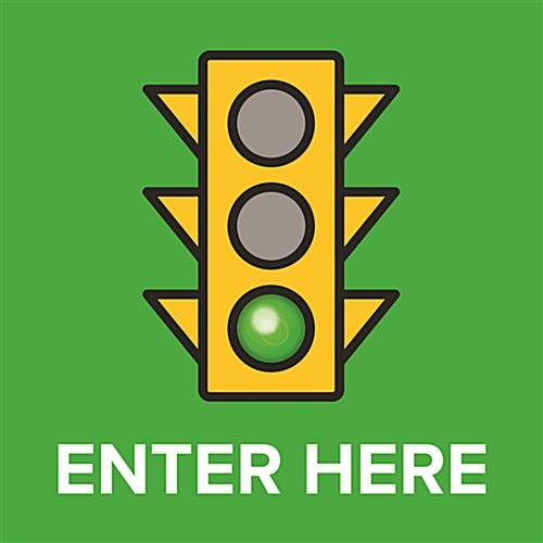 Enter Here Floor Sticker with Pre-Printed Artwork for Indoor and Outdoor Crowd Control