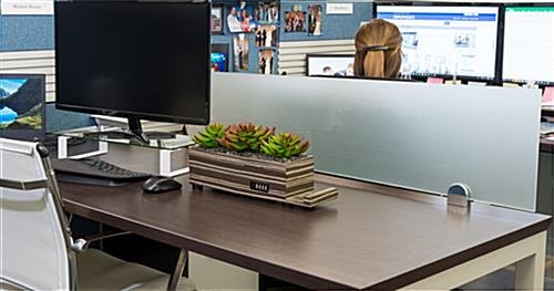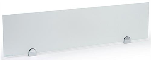 This desk mounted privacy screen is a great way to allow employees to take a break from collaborative work and focus on their individual assignments. Each 12” x 48” modesty divider is constructed of tempered glass that will match any office décor. The opaque privacy screen has dual functionality as it also serves as a markerboard for employees to write notes and reminders. Each modesty divider includes two clamps to hold the panel and hardware to permanently attach the tempered glass accessory to an existing office workstation. Employees will appreciate the break from collaborative work that this privacy screen provides. The functionality of this markerboard makes it a great addition to any workstation!