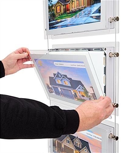 If you’re looking to revolutionize how you advertise properties at your real estate agency, this digital hanging window display is the perfect choice for your business. Our innovative design combines an inward-facing illuminated light box with an outward facing 15.6″ digital screen, allowing you the best of both worlds for digital and static signage. Whether you’re showcasing glam shots of property or bringing foot traffic into your business with video footage of your newest listings, this suspended dual-sided unit can do it all in full 1080p resolution. Utilize the magnetic acrylic lenses to swap and replace your static advertisements and imagery quickly. The high-brightness LCD screens are designed to face outwards to the street to help attract individuals to your store. This hanging sign allows you to showcase digital advertisements using WiFi and Bluetooth connectivity, or highlight interior static promotions with its backlit light box design. These suspended digital hanging window displays are fully powered through the cable system, meaning there are no additional cables or cords to worry about. Bring in more customers and make a lasting impact on your business with our hanging displays!