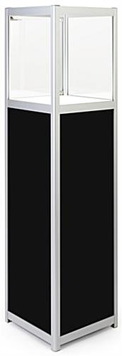 Our 15 x 63 illuminated panel display pedestal is the ideal solution for exhibiting valuables and collectibles in museums, art galleries, or even high-end retail stores. This four-sided stand can showcase items that are up to 13″ wide x 17″ tall under the soft glow of interior LED lighting. The rechargeable battery housed in this tower allows you to keep items lit for up to 12 hours or more! Each illuminated panel display pedestal has a durable silver aluminum frame that keeps contents safe from the harsh conditions of a busy shopping environment. Designed to both protect and showcase your valuables, this unit features a hinged back door with a magnetic press lock and 4 clear acrylic window panes that grants an unobstructed 360 view of your exhibit. Additionally, the lightweight composition of this rechargeable four-sided stand allows it to be highly portable, perfect for transport between multiple trade show events. Present your merchandise to guests under beautiful LED lighting with this illuminated panel display pedestal today!