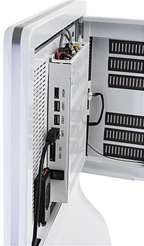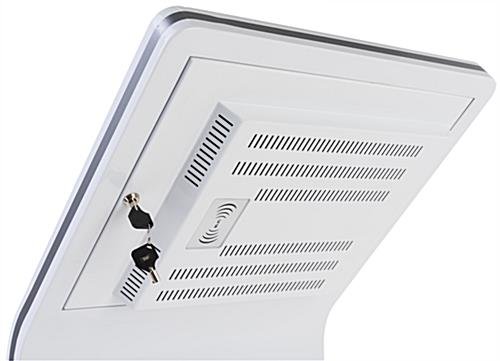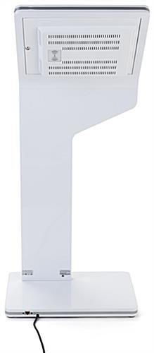 Our touch screen interactive kiosk with camera is the perfect self-service solution for retail businesses, hotels, medical offices, trade shows, and more! This multimedia floor stand combines a 15-inch PCAP panel with captivating visuals and sound for an optimized shopping and check-in experience that is sure to encourage interaction from guests. Each touch screen interactive kiosk includes an Android 7.1 operating system with access to pre-installed apps such as the Google play store, Chrome web browser, and the DiViEx slideshow program. As an added benefit, this digital display features WiFi connection capabilities for easy external media content uploads from the convenience of your smartphone or laptop. This touch screen kiosk additionally contains ethernet, HDMI, and two USB ports enclosed on the back of each pedestal that supports video, image, slideshow, and GIF files. Designed to make customer check-out and check-in experiences less time consuming, this multimedia floor stand is ideal for showcasing your business’s website or user-friendly login portal to deliver highly efficient service to your audience. Suitable for high traffic areas, this touch screen kiosk is made up of a durable aluminum and steel frame with glossy white finish meant to withstand years of use. The hidden cord management system on this digital self-service display helps conceal unsightly wires to maintain a sleek, streamlined look that seamlessly blends with any environment. Use our touch screen interactive kiosk to simplify user experience as well as elevate the way your business communicates and interacts with guests.