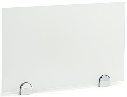 This 15” x 24” desk privacy partition is a great way to make a smooth transition from collaborative style work to individual assignments that require a high level of focus. These modesty screens are suitable for open office environments or can be used as security barriers for testing carrels in an educational training center. The opaque privacy partition serves as a markerboard and is compatible with standard dry erase markers. Frosted glass will complement any office décor. The privacy partition is a great security measure to protect the integrity of testing results in educational training centers. The set included two clamps to hold the panel and hardware for permanent mounting to any standard table. Allow your employees to take a break from collaborative work with these modesty screens!