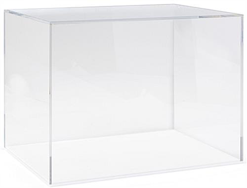 This 0.5″ thick 16″ DCS series white counter display base adds a clean and contemporary touch to this display cube aesthetic. Showcase your most loved valuables, collectibles or retail items at ease in this protective case. This 16″ DCS series white counter display base with a clear lift-off cover keeps your mementos free from dust and fingerprints, even in public environments.