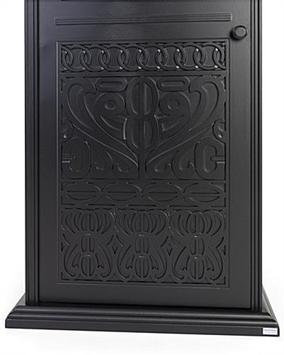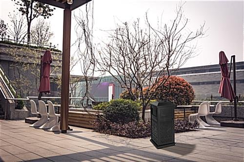 Place this beautifully decorative outdoor trash can near building entrances, apartment/townhouse complexes, or public areas as an eye-appealing way to keep areas litter-free. This waste receptacle features powder-coated cast aluminum material and will stand the test of time. The 17-gallon removable bin inside the decorative outdoor trash can has ample room to contain all that unsightly rubbish and the swing open access door makes emptying a breeze. This covered dome waste receptacle is ideal for use near outdoor patios, cafés, hotels, public recreational and picnic areas. The weather-resistant powder-coated finish ensures a long service life and makes this bin well suited for high traffic areas. This cast aluminum decorative outdoor trash can is the ultimate in terms of durability and longevity.