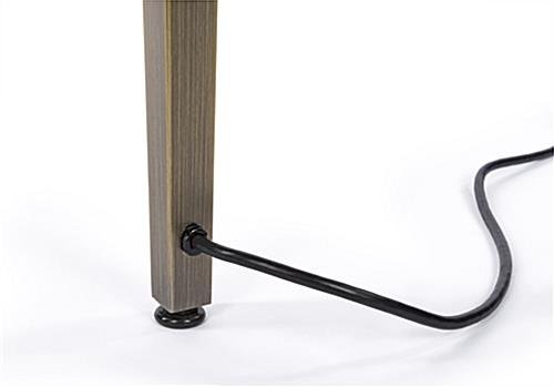 This vitrine top pedestal table showcase features a vibrant, lighted interior that highlights the finer details of jewelry and calls attention to art pieces. Its modern industrial design, featuring clean, straight lines and a white pebbled leatherette floor, perfectly accents luxury retail stores and museums alike. Use the interior sign channel of this floor standing vitrine top table showcase with tapered legs to display brand messaging, create a backdrop for 3-dimensional art, or identify a piece as part of a larger exhibition. Brushed stainless steel framing is coated in a bronze lacquer, creating a timeless appearance that adds visual appeal and feels right at home in a luxury retail environment. The locking door keeps valuables like jewelry and sculptures secure. With its LED lighted interior, gorgeous styling, and easily customizable sign channel, this vitrine table showcase elevates luxury retail displays and museum exhibitions.