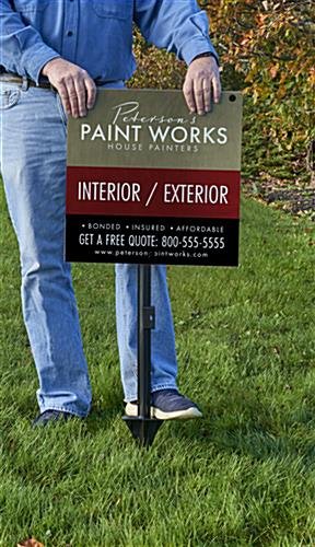 Our plastic t-bar sign stakes are the ideal outdoor accessory that puts your business’s logo or messaging front and center where passersby can see it. Perfect for showcasing real estate, open house, sale pending, and contractor service signage, this t-cade stand features a pointed foot-push mount for effortless in-ground installation within minutes. Each t-bar sign stake with ultra-lightweight design includes multiple mounting holes that make attaching various sized signs easy. This in-ground stand is constructed of durable, weatherproof plastic meant to withstand the damaging effects of inclement weather conditions. Choose between zip-ties or fasteners to securely hold existing graphics in place from the holes found on each t-bar sign stake frame. Pair this outdoor t-cade stand with our 18″ x 18″ custom full-color coroplast® poster (sold separately) for an impactful showcase that is sure to grab the attention of passersby. Spike this weatherproof t-style stake at your next open house or place outside your establishment to increase foot traffic and simplify the way you advertise your business!