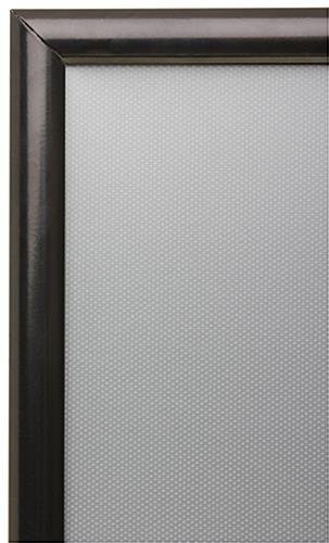 This poster display is an excellent value for consumers, because this product gives up very little in quality, but a lot in price. This black snap frame is an excellent way to improve signage for your business while saving plenty of cash. Buy in larger quantities to save even more money! This cheap snap frame has a matte black finish that meshes nicely with any décor. Use these displays to increase profits by advertising. This discount snap frame can be mounted either horizontally or vertically, allowing users to showcase a wide variety of different pictures. Also use these aluminum poster displays in restaurants to efficiently change posted menus and specials. Check out our wide aluminum snap frame collection that includes different sizes, colors and styles.