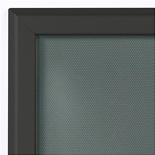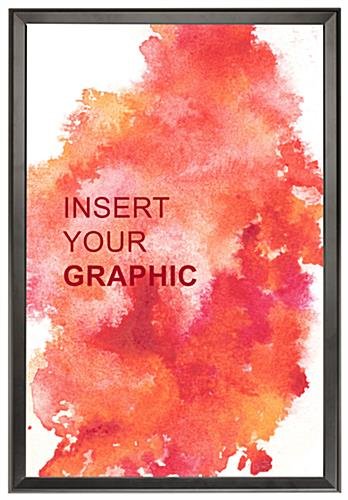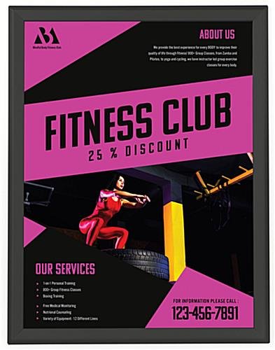 The major features of these quick clip poster frames are they are the highest quality metal frame border in a matte black finish, slim profile design, a backer that the poster rests against inside of frame, and a non-glare overlay to cover/protect the poster. These sign holders can mount vertically for 18″wide x 24″high posters or horizontally for 24″wide x 18″ high landscape version posters.