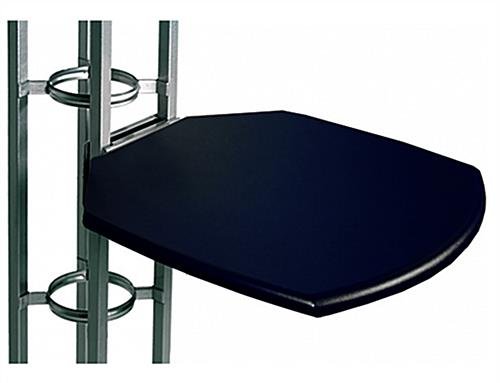 Use an Orbital Express tabletop attachment to customize your modular truss system. This sturdy exhibit accessory provides a convenient space for literature, product samples, or phones. Installation of the Orbus truss tabletop attachment is easy and requires no tools. The reconfigurable black thermoform surface measures 18″ wide and features smooth rounded corners. The Orbus truss tabletop is a simple way to enhance your expo booth and attract guests.