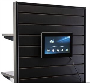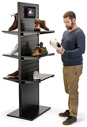 2-Sided Slatwall Kiosk for Floor, 72″h, 10.1″ LCD Screen – Black