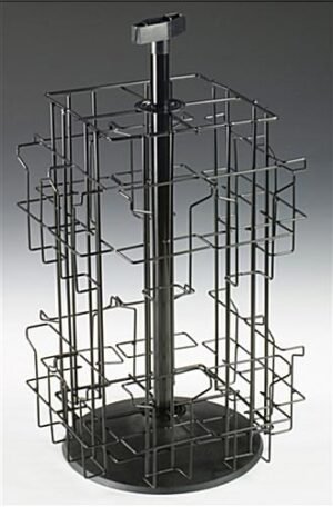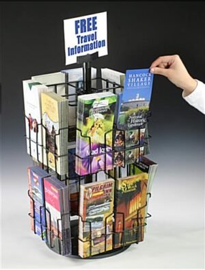 This countertop display is ideal for keeping your brochures neatly organized! The countertop display is fabricated from durable wire with a black gloss finish and a plastic base. This countertop display is intended for desktops and other high traffic areas. This brochure rack, countertop display, is also great for counters with limited space. This countertop display, also known as a brochure rack, features 16 pockets. This is a four-sided display, each side containing four pockets for standard 4″w x 9″h brochures. This countertop display is commonly seen in hotels, museums, travel agencies, attraction landmarks and on information counters.