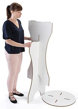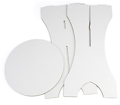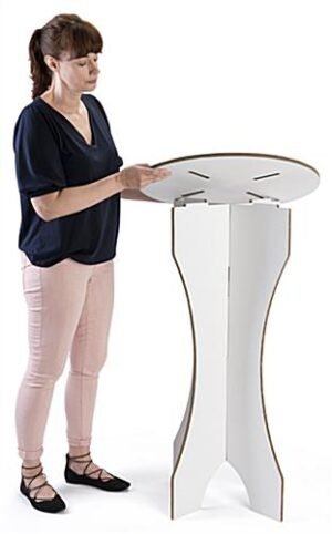 This cardboard bar table can be used at a trade show, party, or wherever you need an affordable cocktail-height surface. The double wall corrugated material makes this recyclable furniture very sturdy and durable. There is a smooth white surface on this 42” tall bar table which can be decorated or left plain. The modern and innovative 3-piece design can be taken apart and shipped flat for extra convenience. A bar table is the perfect piece of recyclable furniture for unique events.