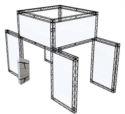 This portable exhibition truss system is the perfect booth solution for your next trade show display. The framework of the unit is made up of a fiberglass, aluminum, and plastic build for a safe and durable structure. The modular truss system is great for adding custom graphics to promote your business model. Setting up the trade show display is as easy as combining the connector cubes with the other framing modules without any tools required. Also included are 6 transport cases to make moving your truss system effortless. Designed as an easy to assemble modular display, the fixture is suitable for a 20’ x 20’ area to showcase your new products or hold an interview with a public figure.