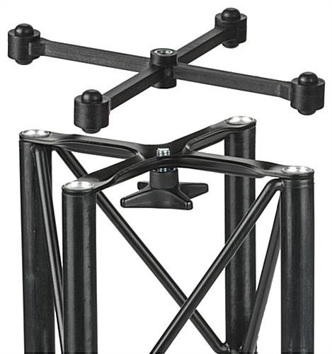 This trade show truss exhibit is perfect for providing booth solutions when your company attends their next multivendor event. The L-shaped design of this portable display is 20’w x 12’h, offering a grand stage for product promotion. Each component connects seamlessly with one another making the modular truss exhibit simple to setup. No additional tools are required for assembly. This truss exhibit is sold without graphics, allowing you to create your own design separately and attach using the provided panel clips. These portable displays also have a designated header area to showcase your company’s logo for long term marketing solutions.