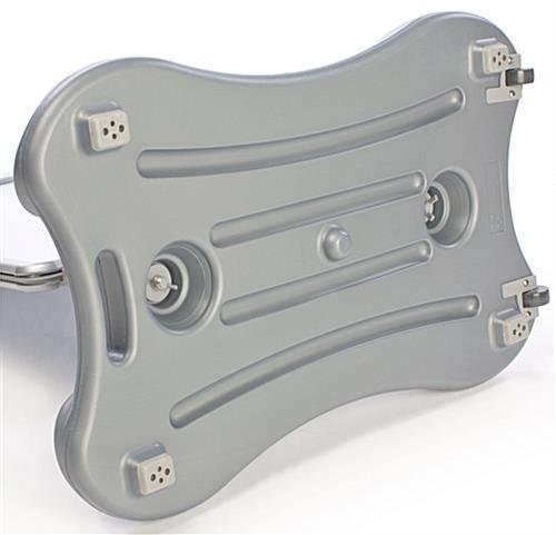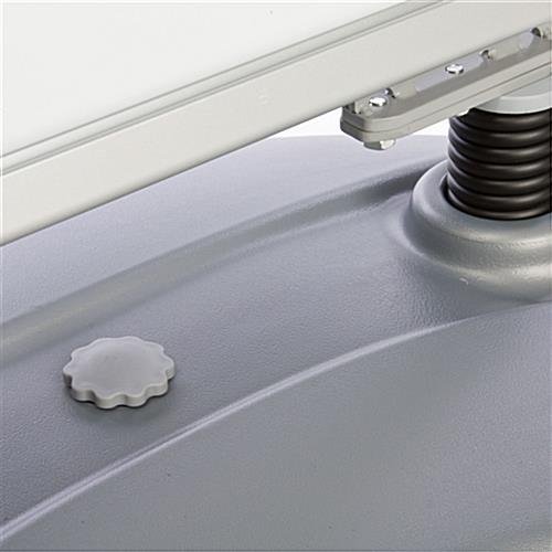 Business signs, sidewalk signs, and other outdoor signs have a waterbase that helps prevent your portable display from tipping over during windy conditions. You can fill this base with sand or water to help stabilize this out door stand. The base on these outdoor signs makes the unit perfect for high traffic areas. Set this unit up on sidewalks, road-sides, and other places that people frequently pass. Outdoor signs use (2) springs to attach the sign board to the waterbase. These springs allow your display to sway with wind to help prevent it from tipping over. These outdoor signs are designed to function well in mild winds. Whereas other a-frames fall over, this pavement signage stands tall. Sidewalk signs, outdoor signs feature wheels on the base and a molded handled to make this display easily portable. This allows you to bring the advertising sign indoors during the night without too much effort.