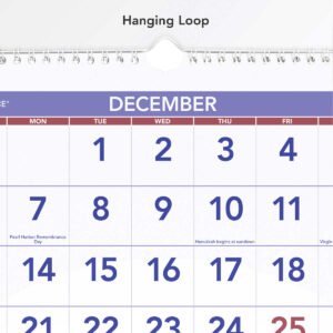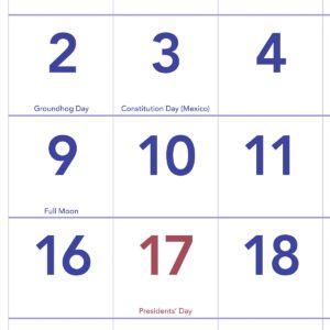 - Federal holidays highlighted in red