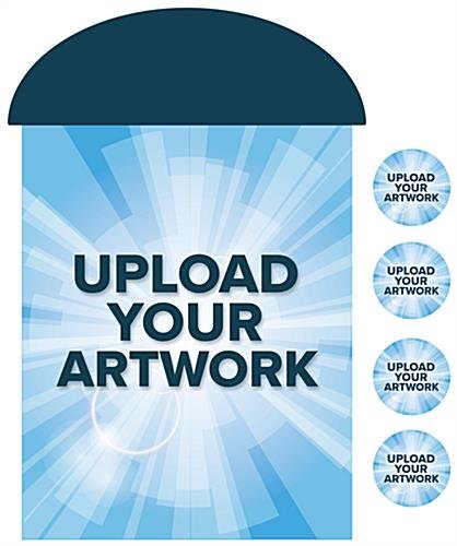 This 22×28 dimensional sign frame insert is perfect for advertising in retail stores, schools, corporate businesses, and much more! Our violator-style poster with contour cut semicircle header and four 5×5 custom printed rounds serves as a unique, one of a kind alternative to ordinary signage. Each dimensional sign frame insert is constructed of lightweight foam core board with a matte finish. Create a custom look by placing the four contour cut pop up rounds with hook and loop attachment anywhere you find visually appealing on the bulletin signage holder. In addition, this violator-style poster can easily slide into any standard size 22×28 floor stand frame. We are confident that this dimensional sign frame insert will allow your advertising and promotional marketing messages to be the focal point amongst any crowd!