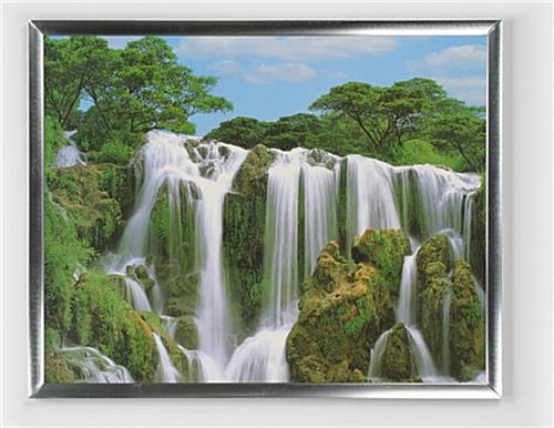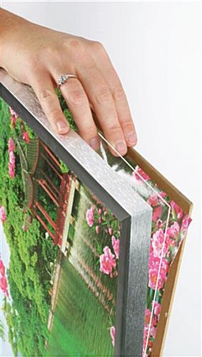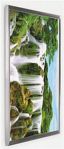 PFA2228SLV is a popular silver frame among our customers. It is very economically priced but does not compromise quality. Heavy-duty metal clips secure the graphic to the frame. These clips allow for fast and simple graphic changes increasing the usage you will get out of this piece. Also, it is made from very strong but lightweight brushed aluminium. The silver frame, including the silver edges, acrylic cover, strong wood backing, and metal clips, weighs in at only 4 lbs.