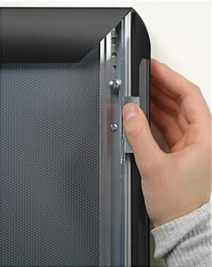 This snap together poster frame is designed to display prints and advertisements on the wall. The picture holder is made from aluminum and features a 45mm thick profile with sleek rounded corners. Each 22” x 28” frame has a front opening design that allows for quick and easy signage changes. Simply flip the edges of the display open, remove the protective PVC lens, and insert your graphics. Each frame is wall mounting in either portrait or landscape view. The front opening aluminum picture holder includes mounting hardware for easy hanging.