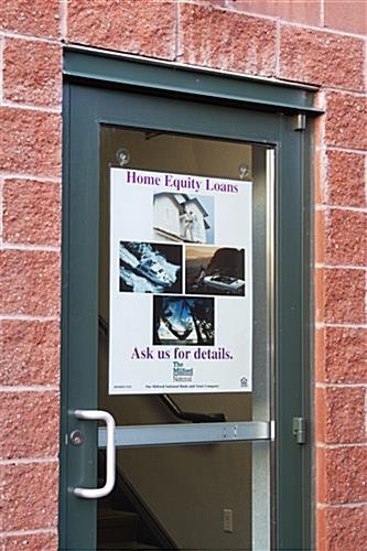 This frame is a plastic sign cover made of plastic. These holders are a clear flexible plastic unlike rigid acrylic. This plastic sign cover is clear to keep the focus on the sign and not the display. This unit is an inexpensive alternative to acrylic. This sign sleeve is a plastic sign cover that includes suction cups and adhesive tape. In addition, these holders can be used in conjunction with ceiling hanging kits, which are sold separately. This plastic sign cover, also called a sign sleeve, can display portrait and landscape format prints if mounted with the tape. When displayed using the suction cups, this item can only be exhibited vertically. This sleeve is a plastic sign cover that is a double-sided holder when mounted using the suction cups. This unit is designed for quick changes, images simply slide into the display. This holder is a plastic sign cover that is easy to set up with any of the mounting options.