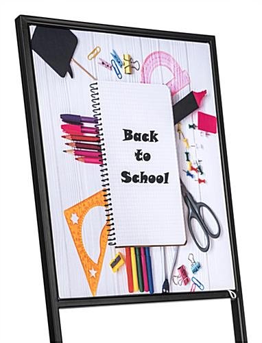 This 22×28 SEG replacement poster for FSSEG stands is custom printed with your full color artwork from edge to edge. A thin silicone strip is sewn onto each side and fits into specially designed channels on the metal sign frame (sold separately.) Use a 22×28 SEG replacement poster to freshen up your graphics or advertise a new sale or event. The flexible polyester material is washable and folds easily.