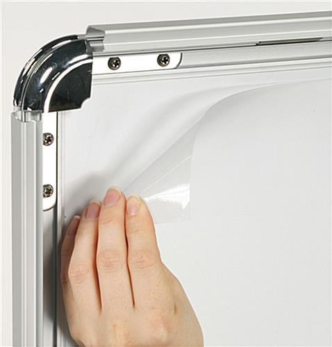 A sandwich board is perfect for setting outside your office, restaurant, or retail store. Advertisers at these establishments can let passersby know about sales and upcoming events. Featuring a double-sided, snap-open poster frame, this sandwich board will attract attention from all angles. To load your sign frame with an eye-catching message, just snap open the four edges, place your poster inside and snap shut! To keep your posters and advertisements looking fresh and new, the sandwich board also features a non-glare protective lens. Please note that while the snap frames and lens work to seal out moisture, your posters may become damaged if used in very harsh conditions such as heavy rain and snowstorms.