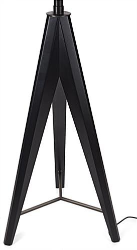 This glass display box with tripod base is a sleek and modern option to showcase illuminated collectibles, keepsakes, and art in museums, galleries, and retail boutiques. The interior is lined with luxurious looking faux leather, providing a high-quality base to arrange your valuable items. This floor standing glass display box features a locking pull-out door to place and protect vintage and high-end collectibles easily. The wooden matte black legs house a UL-certified cord to maintain a sleek appearance in your boutique. Constructed with tempered glass and stainless steel, this unit is durable enough to withstand high traffic environments. Attract customers to your illuminated keepsakes with the eight built-in LED spotlights. Our floor standing glass display box provides a luxury case for artwork, valuable accessories, and sculptures in museums, boutiques, and gallery showcases.